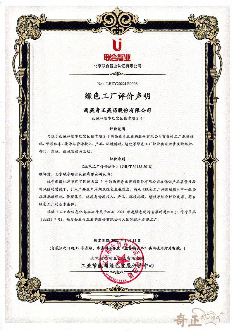 2022年-國家綠色示范工廠(工信部-林芝廠)