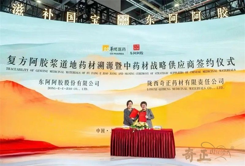 2024年11月10日,在第七屆中國國際進口博覽會上,奇正中藥下屬隴西奇正藥材有限責(zé)任公司(以下簡稱“隴西奇正”)與東阿阿膠股份有限公司(以下簡稱“東阿阿膠”)簽署戰(zhàn)略合作協(xié)議,隴西奇正成為東阿阿膠復(fù)方阿膠漿道地藥材溯源中藥材戰(zhàn)略供應(yīng)商,標(biāo)志著兩家企業(yè)資源互補、優(yōu)勢共享,共同致力于中醫(yī)藥產(chǎn)業(yè)的高質(zhì)量發(fā)展。